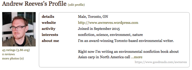 You can find me at goodreads.com/awreeves and check out what I’m reading or read the reviews I’ve left of other books I’ve stumbled across.