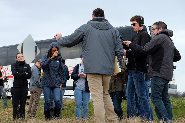 Reporters near Toledo, OH learning about farmer’s voluntary efforts to keep phosphorous from entering Lake Erie’s western basin.